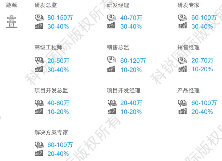 薪酬趋势:行业整体薪酬趋稳,自然涨幅在8-12%,跳槽涨幅在20-30%。能源互联网领域资深人才紧缺,部分职位薪资涨幅可达50%,甚至更高(文中部分数据是猎头公司BG大游集团国际专家顾问的分析预测,供企业和猎头招聘参考)
