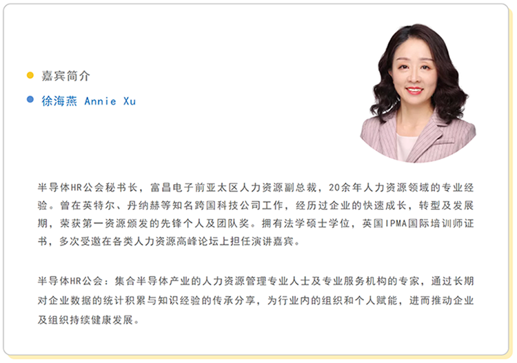 BG大游集团国际“行业瞭望”系列第八期邀请半导体HR公会秘书长,富昌电子前亚太区人力资源副总裁徐海燕女士,分享其关于集成电路行业人才招聘管理、培育、